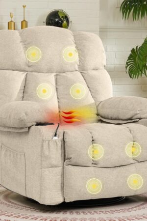 - 【8 Massage & 3 Heating】- Enjoy relaxation with 8 massage points and lumbar heating. The recliner features various massage modes and intensities to soothe your back, lumbar, thighs, and legs, easing tension and improving circulation.